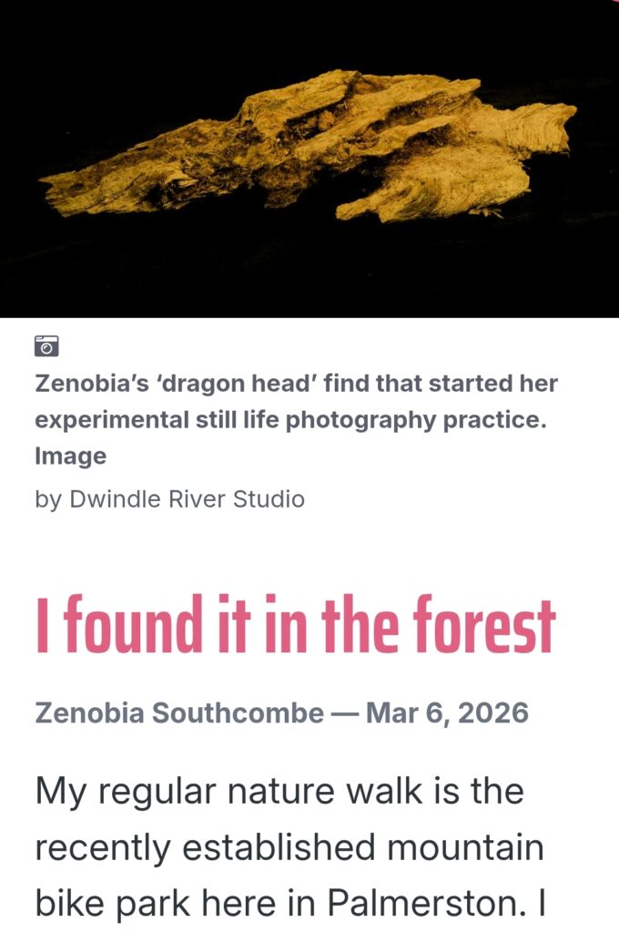 I found it in the forest is on display from 9 March to 17 April at White Box Gallery, 19 George Street, Ōtepoti/Dunedin